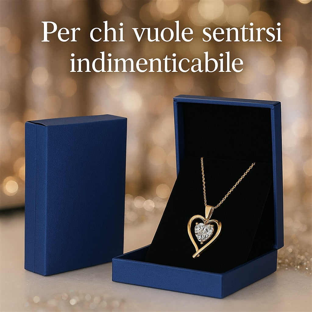 Dorelia non è solo un gioiello, è un'emozione cristallizzata: un cuore scintillante incastonato in un abbraccio dorato, pronto a raccontare la tua storia d'amore, di forza, di unicità.